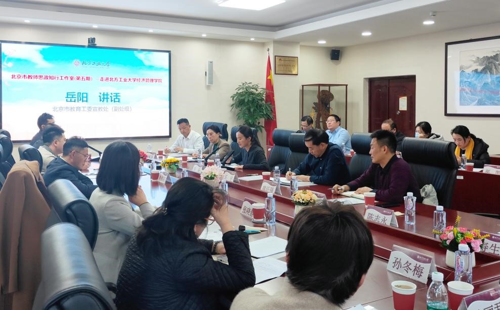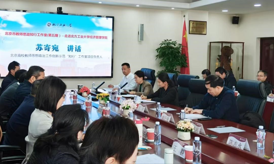 首都师范大学教育学院德育研究院师德中心主任、北京高校教师思政工作创新示范“知行”工作室负责人苏寄宛在讲话中介绍,教育工委于2023年底专门设置了北京高校教师思想政治工作创新示范工作室项目,走进北方工大经管学院是今年的第五期活动。今天会议主题就是紧紧围绕、贯彻落实好总书记教育大会讲话精神以及有关教育强国、教师队伍建设等精神要义,共同研讨,凝心聚力,群策群力,共同开创二级学院党委党建、教师思政工作、师德师风建设新局面。