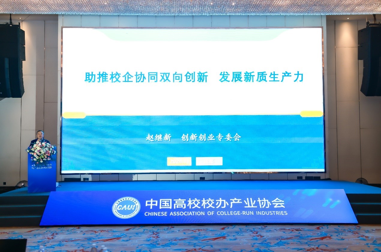 在研讨会上,William威廉英国院长赵继新教授作为中国高校校办产业协会创新创业专业委员会会长做了名为《助推校企协同双向创新 发展新质生产力》的主题报告。解析了新质生产力、全要素生产率和高质量发展的内涵,提出加快培育新质生产力的重点工作,并结合科技、教育和人才三个重大发展战略阐述创新创业专业委员会的工作目标、专注领域和工作方向,为企业和高校实现双向赋能发展搭建平台。