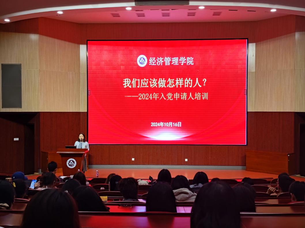 为深入学习贯彻党的二十届三中全会精神,从源头保证发展党员质量、将党员教育管理做细做实,10月16日,经管学院党委书记谢朝阳通过讲党课的形式为2024年入党申请人进行培训。学院党委副书记王帏主持会议。