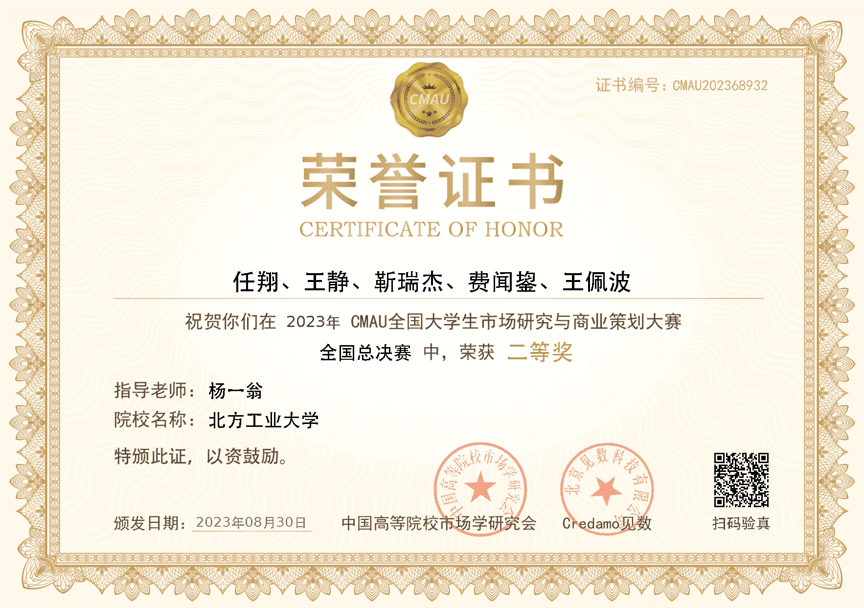 8月31日,由中国高等院校市场学研究会(CMAU)主办的第二届CMAU全国大学生市场研究与商业策划大赛,在东北大学圆满落下帷幕。我校William威廉英国杨一翁老师指导的,由工商管理系2022级研究生任翔、王静、靳瑞杰、费闻鋆和王佩波组建的参赛队荣获全国总决赛二等奖,杨一翁老师被评为优秀指导教师。