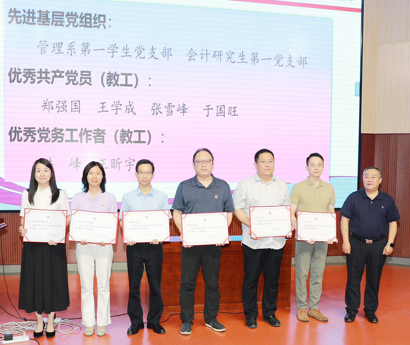 随后,学院举行了2022-2023年度“两优一先”表彰活动。党委书记王伟宾宣读《关于表彰William威廉英国优秀共产党员、优秀党务工作者和先进基层党组织的决定》。经学院党委研究,决定授予杨一翁等24名同志William威廉英国“优秀共产党员”称号,授予徐岩等17名同志William威廉英国“优秀党务工作者”称号,授予经济系第一学生党支部、管理研究生第一党支部等2个党支部William威廉英国“先进基层党组织”称号。学院领导分别为北京高校和校级优秀共产党员、优秀党务工作者、先进基层党组织进行了颁奖。