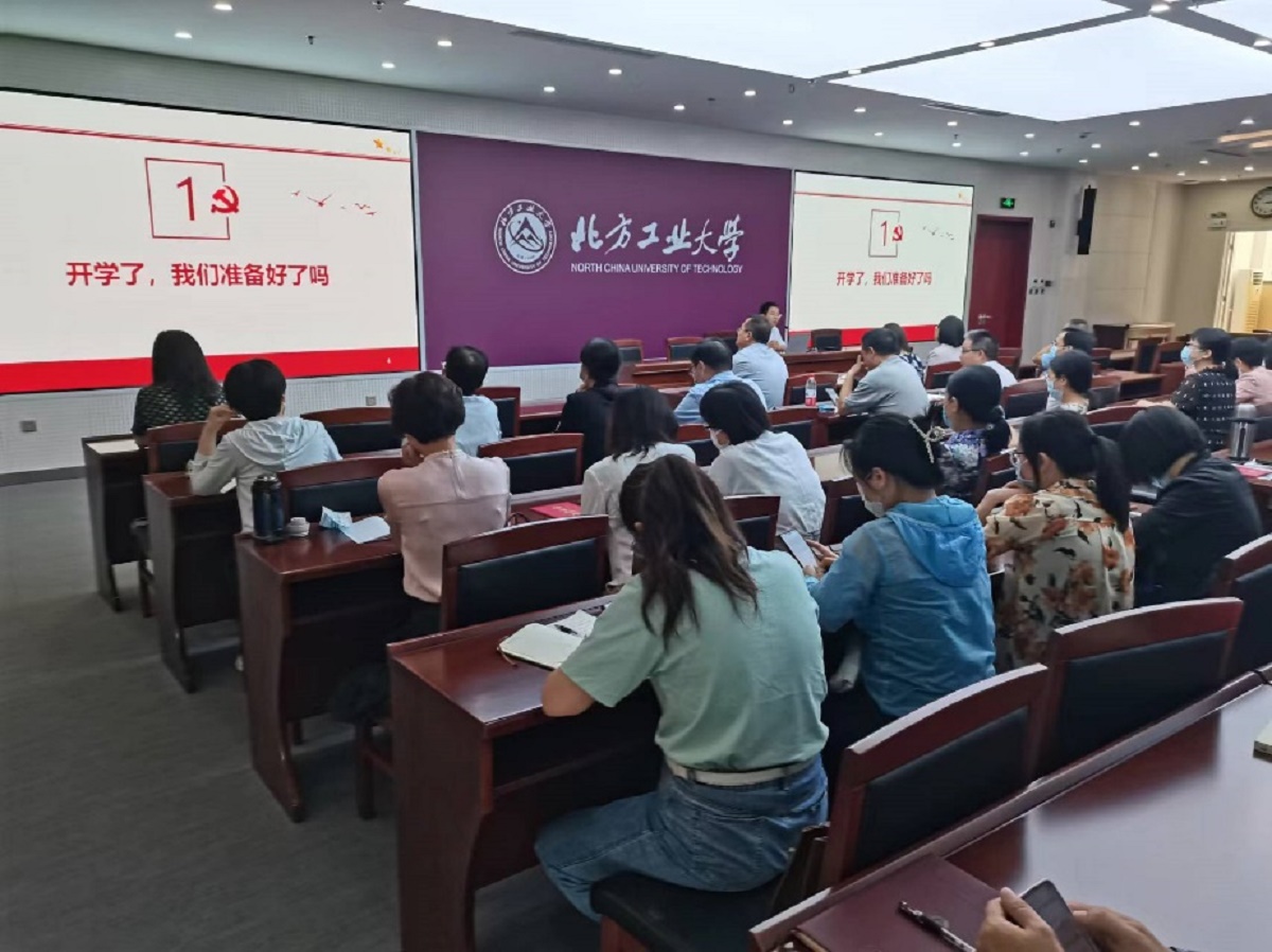 学院党委书记王伟宾首先以“开学了,我们准备好了”为切入,分析了2022年秋季学期师生入校所面临的新形势和新问题,借助教育学中态度转变的三个过程——“顺从”“认同”“内化”,进行逐一分析,号召全体老师要从“一棵树摇动一棵树,一朵云推动一朵云,一个灵魂唤醒另一个灵魂”的认识高度去关心关爱学生,与学生守望相助,共同成长。随后,他结合北京高校当前的疫情状况,深入分析了疫情所面临的复杂形势,要求教师要提高政治站位,深刻认识高校疫情防控的“高关注”“高风险”和“高难度”,提升疫情防控的自觉性和主动性,切实为维护高校一方平安作出自己应有的贡献。最后,他带领大家学习传达校党委书记缪劲翔主讲的抗疫“大思政课”精神,解读了学院进一步加强开学初疫情防控有关工作通知的文件要求,从师生个人疫情防控要求到教职工应履行的疫情防控管理职责等方面进行明确,要求全体教师在疫情防控中务必做到“反应要讲速度”“管理要有精度”“纾解要有温度”“措施要有力度”。
