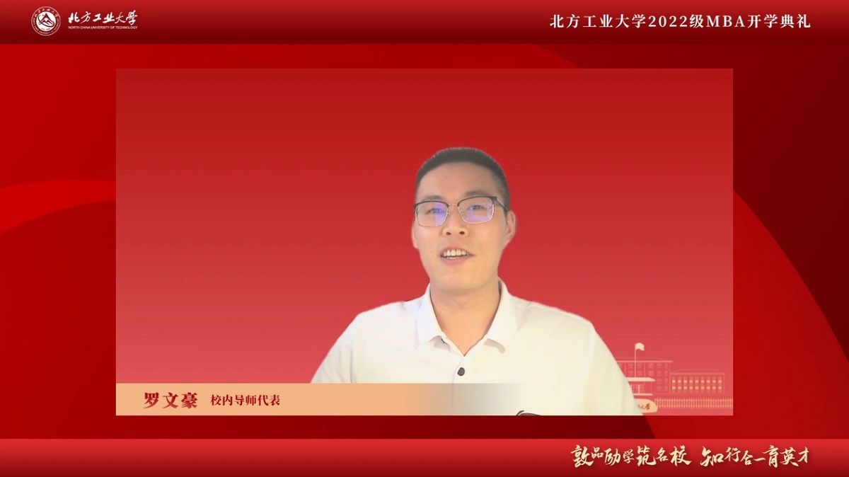 副校长王建稳代表学校全体师生对2022级MBA同学的到来表示祝贺,并在致辞中对学校的发展历程和MBA专业学位办学情况进行简要说明。他希望同学们在北方工大学习时知行合一,理实并重,协调发展,正确处理好工作与学习、理论与实践的关系。除此之外,还要构建系统完善的工商管理知识体系,掌握相应的管理方法,全面提升个人管理技能。面对世界百年未有之大变局,他告诫同学们,要多读书、多充电、不断提升自身能力,积极应对风险挑战。愿每位同学都能够在北方工大积蓄力量,通过两年的学习启航再出发!