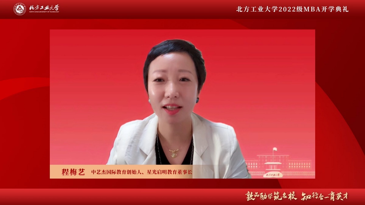 中艺杰国际教育创始人、星光启明教育董事长程梅艺代表校外导师对新加入williamhillMBA的94位新生表示衷心祝贺。她表示,十分期待与大家共学、共创、共享。作为校外导师,她将始终如一地关心和支持学院的学科建设、实务创新和人才培养,尽己所能,与学院同心共进。