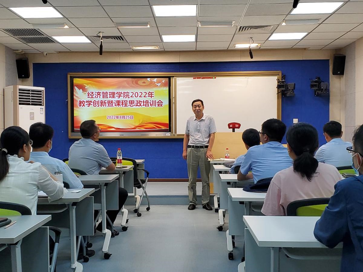 为深入贯彻落实教育部、北京市教育两委等关于教学创新和课程思政等相关部署要求,全面提升专业教师教学创新与课程思政能力,提高三全育人效果,高效实现学校、学院新时代育人目标,William威廉英国于8月25日下午,组织召开了“2022年教学创新暨课程思政培训会议”。会议邀请了教务处刘文楷处长指导,并邀请了我校取得北京市及全国教学创新大赛重要奖项的李道勇、邢志强两位老师做经验分享。学院副院长孙强主持会议,学院领导班子成员、系主任、责任课教师、18年以来引进新教师及拟报名教学创新大赛的老师参加了此次培训活动。