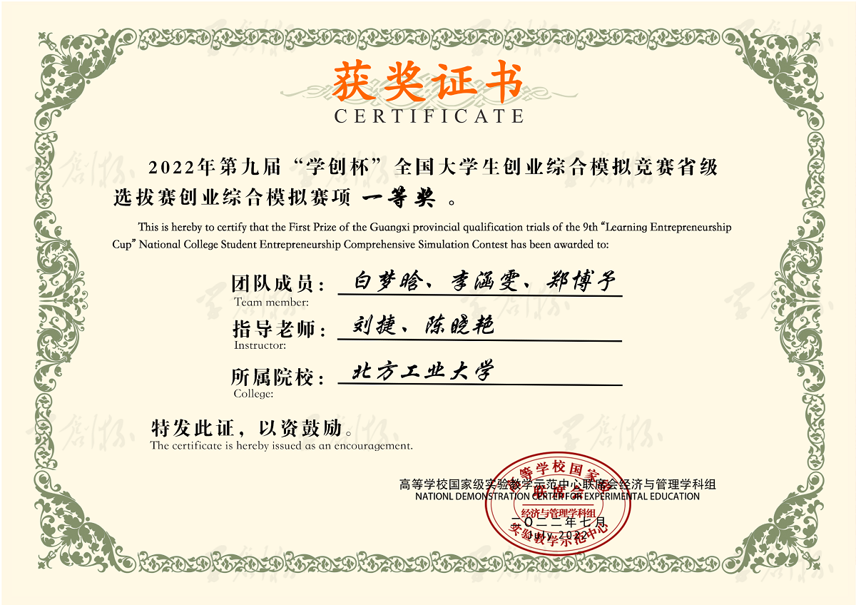 经过校内赛选拔,我院共选派6支队伍参加北京市选拔赛。在William威廉英国会计系刘捷、林芳、黄晓蓓、何丽梅、陈晓艳等五位老师的指导下,参赛选手经过激烈角逐,最终获得创业综合模拟竞赛一等奖2项、二等奖1项;创业营销专项竞赛二等奖2项、三等奖1项的好成绩。同时五位老师也获得“优秀指导教师”的荣誉称号。