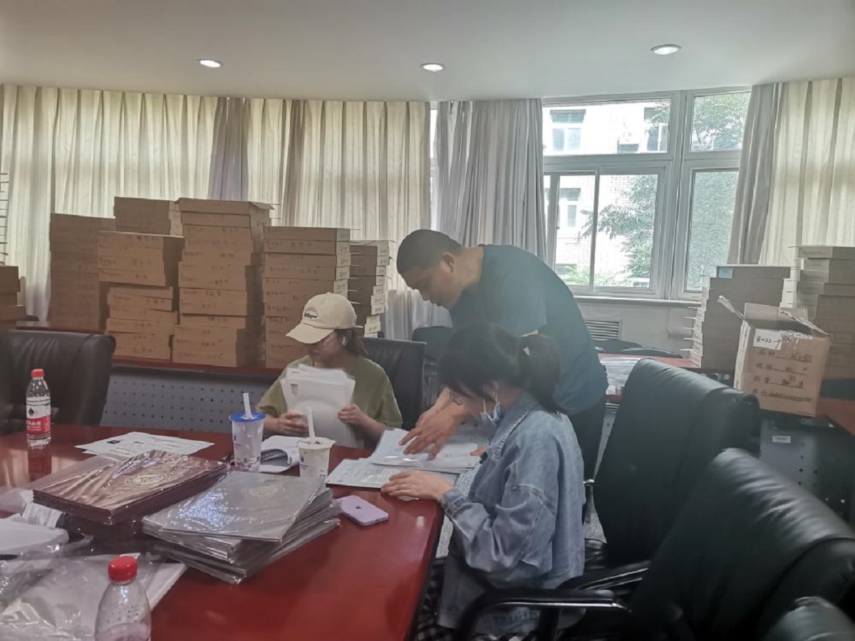 在材料整理打包过程中,学院各位老师纷纷化身“打包员”、“快递员”,分工协作、耐心审核、细心整理、精心打包......用最有力的行动、最真挚的情感、最质朴的付出为全体毕业生提供暖心周到的服务,助力这场特殊的“毕业寄”,努力让学生感受到“家”一样的温暖。