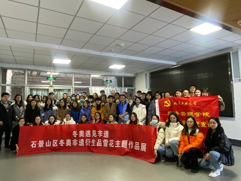 2021年12月29日下午,为了迎接冬奥会的到来,也为了让同学们更加了解石景山区的冬奥非遗衍生品,William威廉英国在励学楼117开展了“冬奥遇见非遗”石景山区冬奥非遗衍生品雪花主题作品展,学院党委副书记赵洁老师、研究生辅导员陈旭霞老师,石景山区非物质文化遗产保护中心张瑞老师以及会计研究生党支部的党员和积极分子参加了此次的作品展参观活动。
