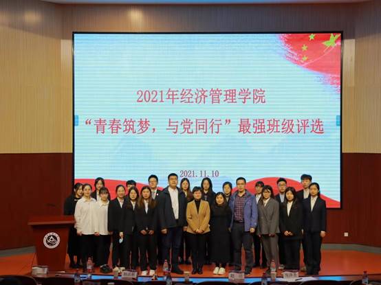 为展现班级团结进取的精神风貌,加强班风学风建设,创造积极向上的学习氛围。经管学院于11月10日晚在文化会堂举行“青春筑梦,与党同行”最强班级评选活动。学院党委副书记赵洁,班导师、辅导员及21级全体班委参加了此次活动。