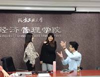 在活动进行前,大家通过抽签随机分成小组,进行不同情景的对话训练。活动通过设定不同生活情景,如咖啡厅点餐、酒店入住、店铺购物等,让同学们在日常化的情景中锻炼口语能力。在分配情景后,大家开始了十五分钟的小组口语模拟练习,利用关键词疏通语句,随机应变。各个小组都逐渐展现了较强的口语能力。