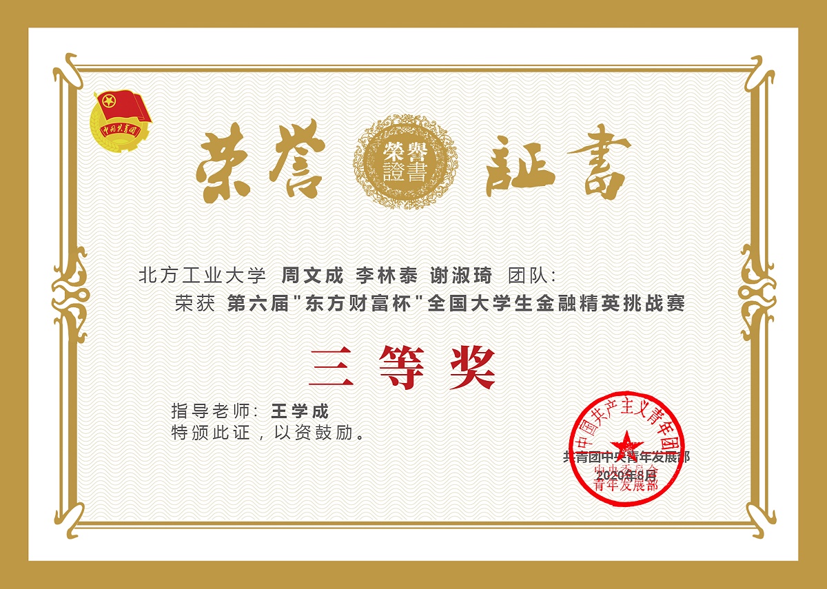 由共青团中央青年发展部主办,东方财富信息股份有限公司、全国学校共青团研究中心承办的第六届“东方财富杯”全国大学生金融精英挑战赛圆满结束。我校经管学院经济系张蜀林老师、王学成老师、王丽娜老师作为指导教师,组织并指导学生参加了本届大赛,最终有3支团队获得全国二等奖,1支团队获得全国三等奖。