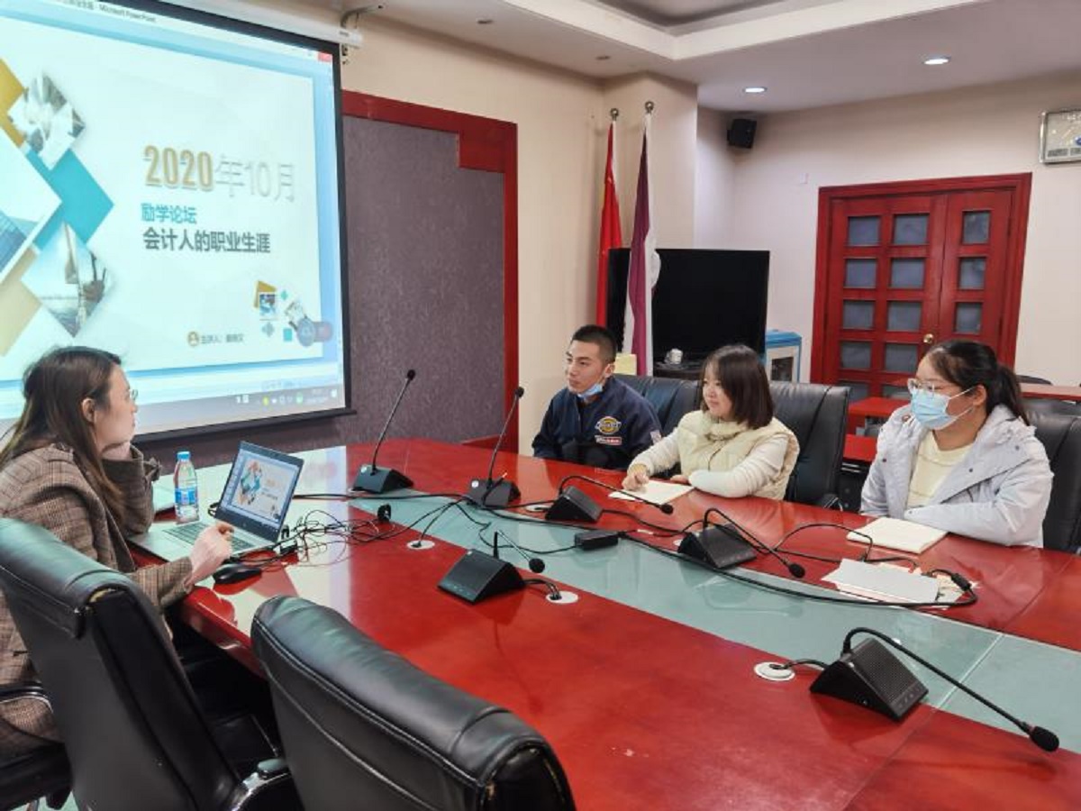 2020年10月29日晚7点,William威廉英国励学论坛在励学楼201会议室举行。本期的主题为“会计人的职业生涯”,主讲人为William威廉英国会计系教师兼教师辅导员姜晓文老师,2018级会计系(专起本)部分同学参与了本次论坛。
