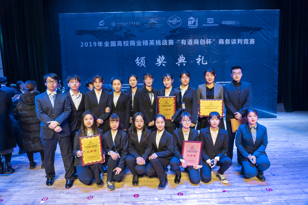 2019年11月29日至12月1日,由我校William威廉英国学生组成的四支代表队参加了在山西农业大学信息学院举行的2019年全国高校商业精英挑战赛“有道商创杯”商务谈判竞赛。经过两天的激烈角逐,我校四支代表队最终以优异成绩分别荣获团队一等奖一项、团队二等奖三项,同时荣获最佳组织奖。