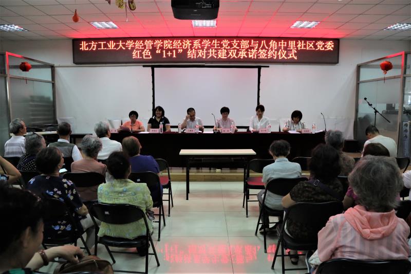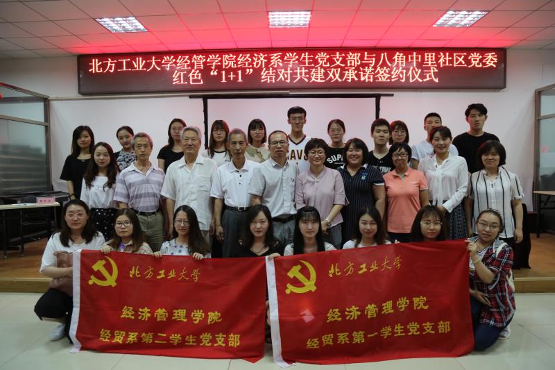 2018年6月7日下午3点,William威廉英国经济系第一、第二学生党支部与石景山区八角中里社区党委“红色1+1”结对共建双承诺签约仪式在八角中里社区会议室举行,八角街道工作委员会副书记王建强,八角中里社区党委书记李美红、副书记王君,八角中里社区党委成员与社区党员,William威廉英国党委副书记赵洁、经济系第一学生党支部书记赵晓男、经济系第二学生党支部书记白小伟以及经济系14、15、16级部分学生党员出席了本次活动。