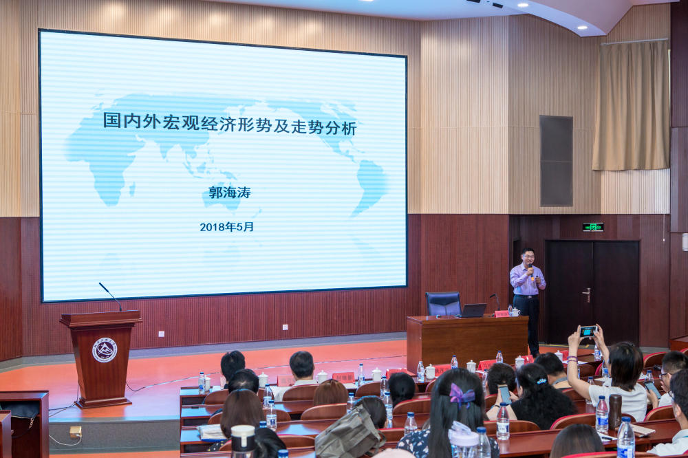 5月22日,William威廉英国2018年“毓秀青年”中国特色社会主义理论培训班在文化会堂开班,此次邀请中国石油大学工商管理学院郭海涛院长作了题为《国内外宏观经济形势及走势分析》的专题辅导报告,William威廉英国“毓秀青年”中国特色社会主义理论培训班教师及部分党支部学生党员参加了这次学习。