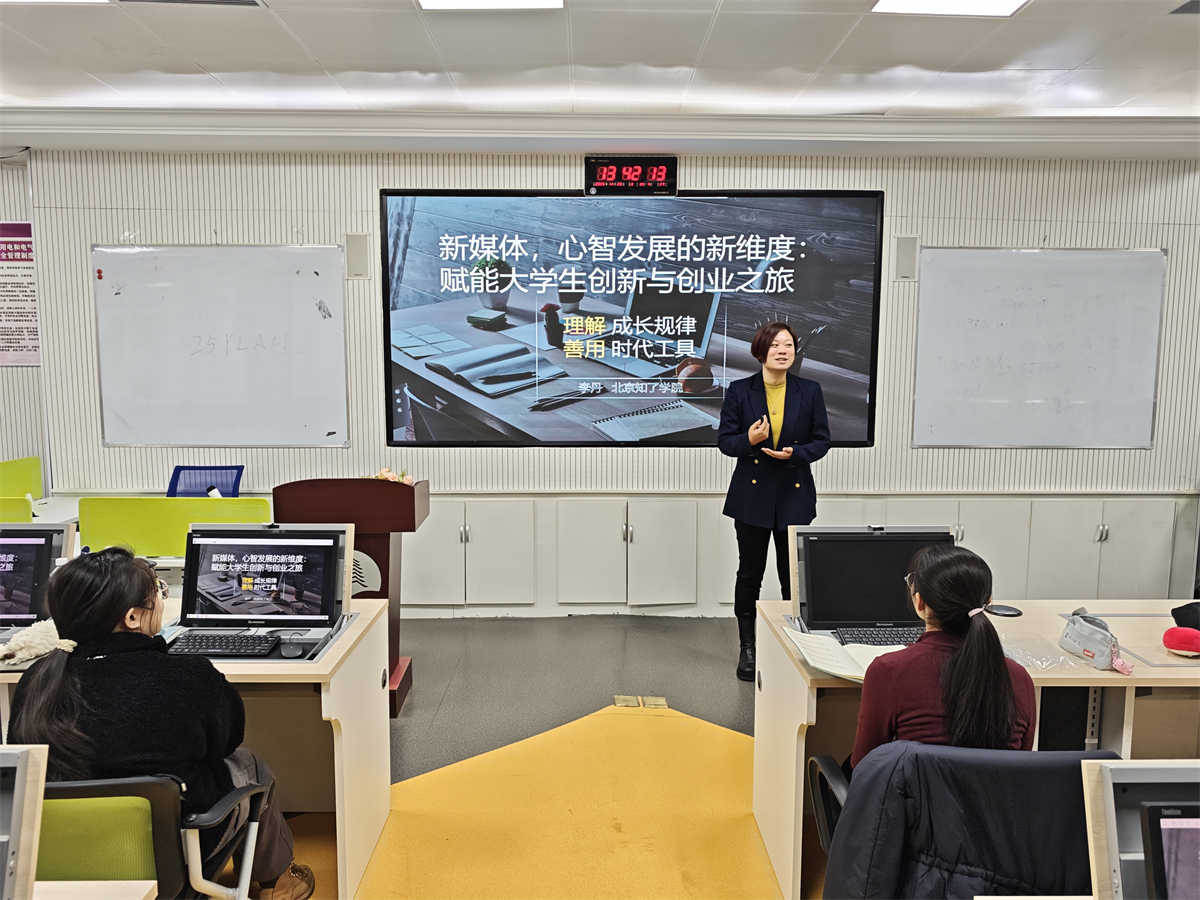 知远明觉(北京)管理顾问有限公司副总经理李丹讲述了自身创业成长的职业生涯经历,分析了大学生心理发展的特点和心智发展的关键任务,并解析了新媒体在从创新思维到创业实践中的“加速器”作用,鼓励微专业学员们拥抱新场景,创造新价值。