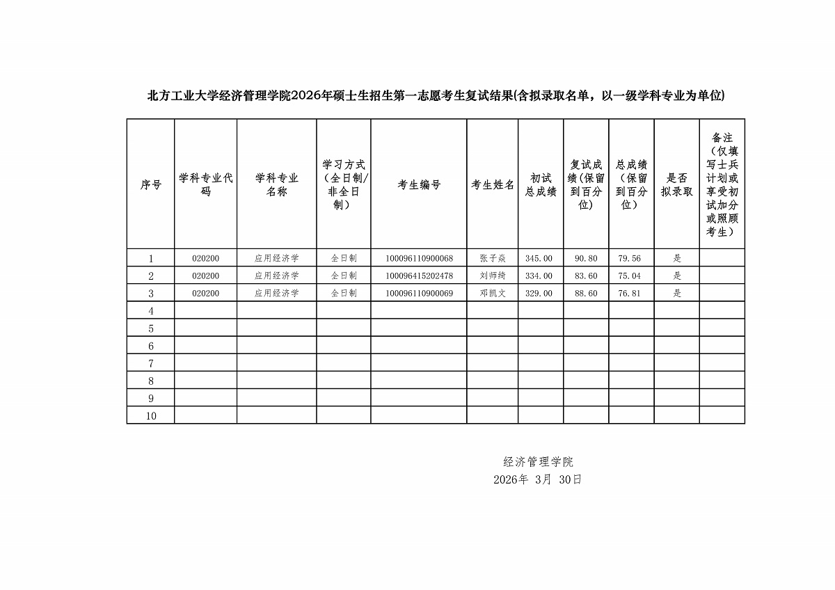 William威廉英国2026年硕士研究生招生考试复试第一志愿考生名单——应用经济学
