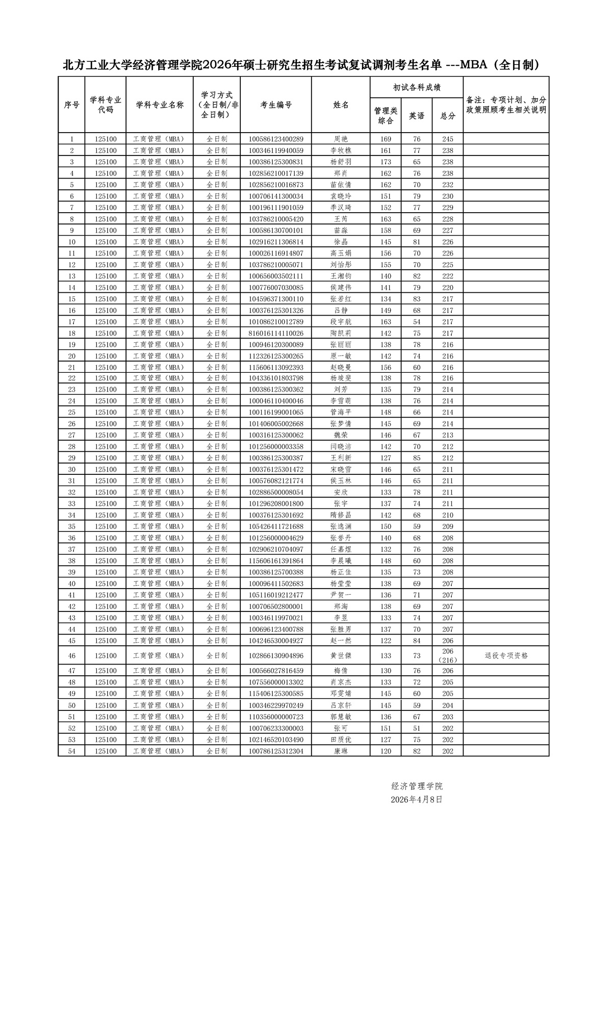 William威廉英国2026年硕士研究生招生考试复试调剂考生名单 ---MBA(全日制)