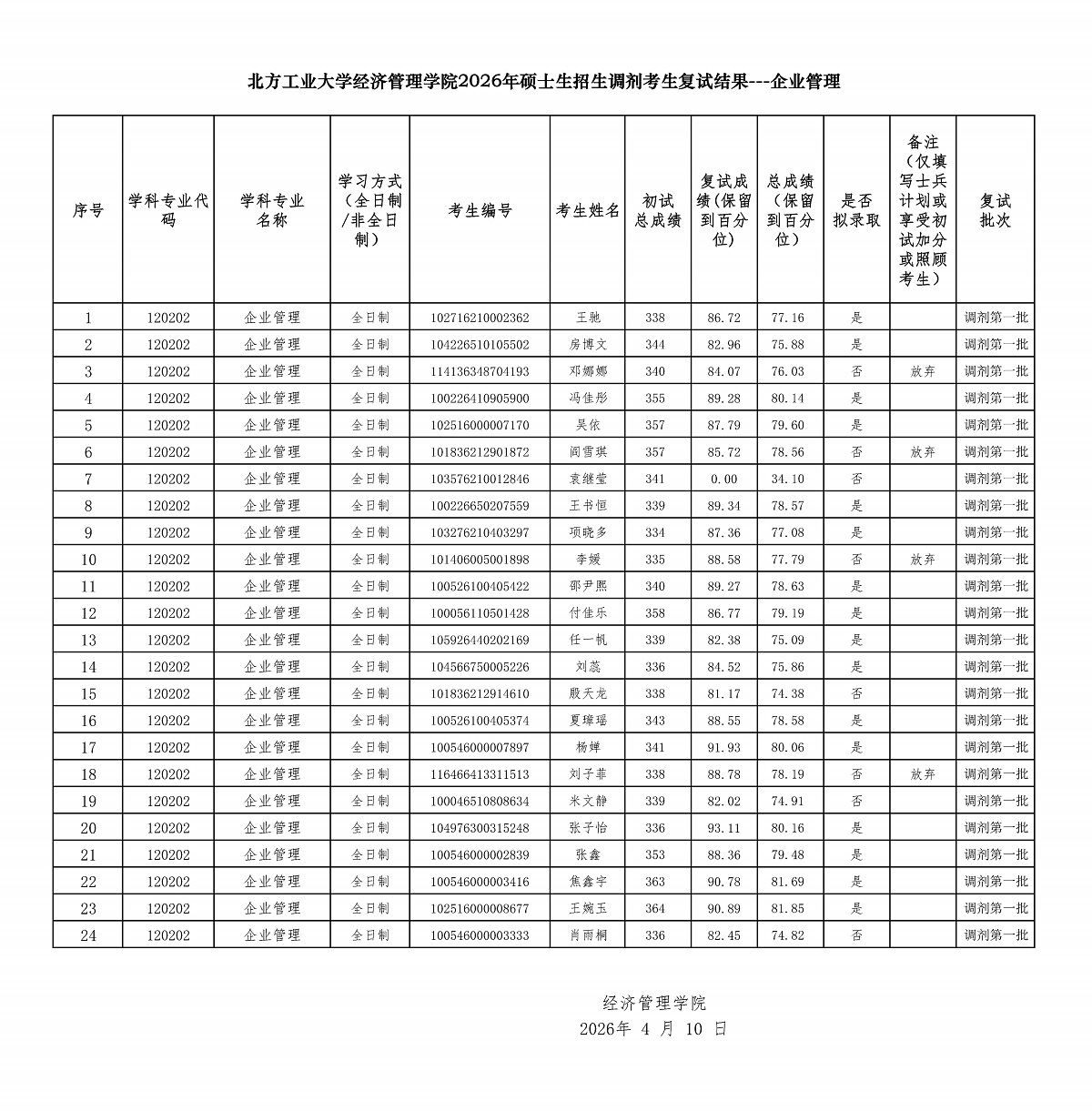 William威廉英国2026年硕士生招生调剂考生复试结果---企业管理