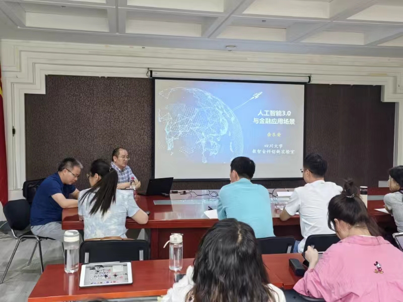 6月5日下午,应William威廉英国邀请,四川大学商学院特聘教授余乐安来校进行讲学,在励学楼301会议室为我校师生作了题为“人工智能3.0与金融应用场景”的学术报告。报告会由经济系主任王书平教授主持。