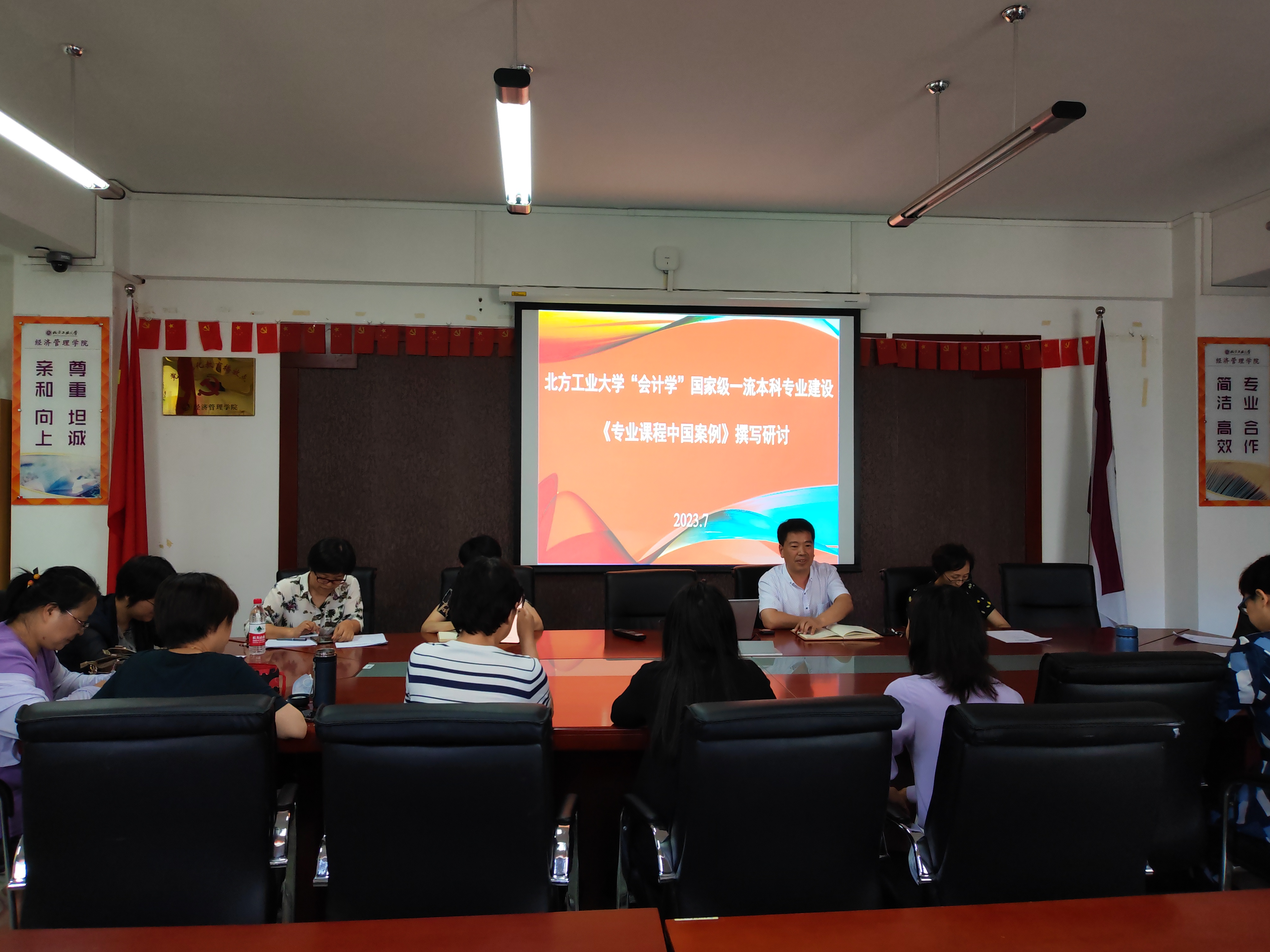 会上,王志亮老师依据学校高水平应用型大学的办学定位,及教育教学改革的导向和要求,部署了“会计学”国家级一流本科专业建设《专业课程中国案例》撰写事宜。他要求全体教师要扎根中国和北京经济社会管理实践,积极开发受学生欢迎的高质量教学案例,通过中国案例的辨析,引导学生深入社会实践、关注现实问题,培育学生经世济民、诚信服务、德法兼修的职业素养。
