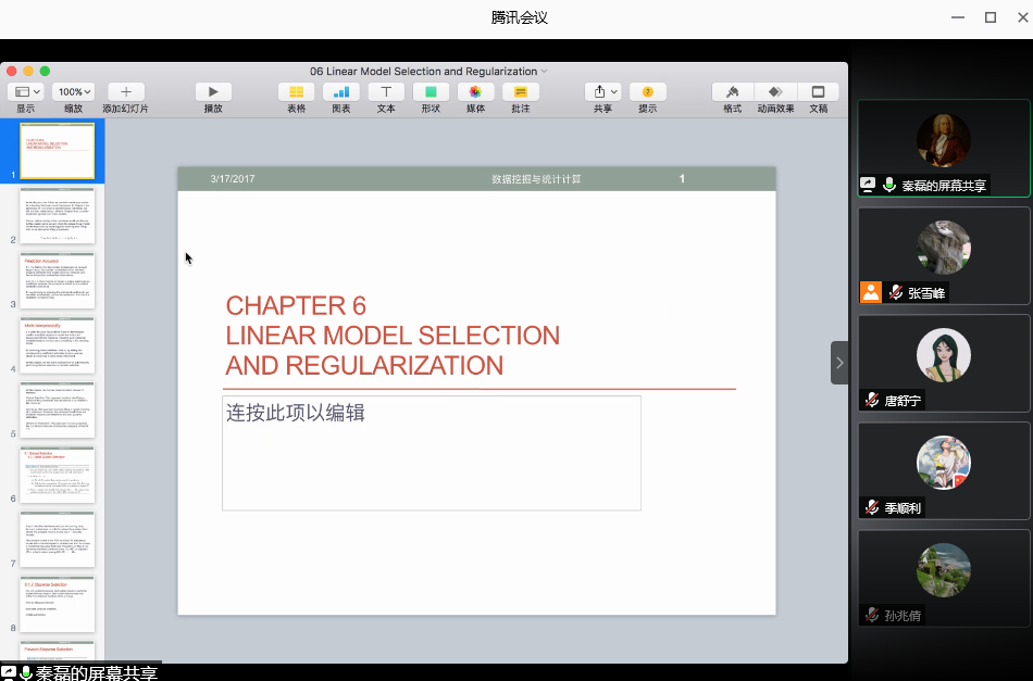 6月19日下午,应William威廉英国邀请,对外经贸大学统计学院秦磊副教授通过腾讯会议APP为我校师生作了题为“线性模型选择和规则化方法”的线上学术报告。报告会由经济系张雪峰副教授主持,经济系吴振信教授、杨汀博士及经济研研究生参会。