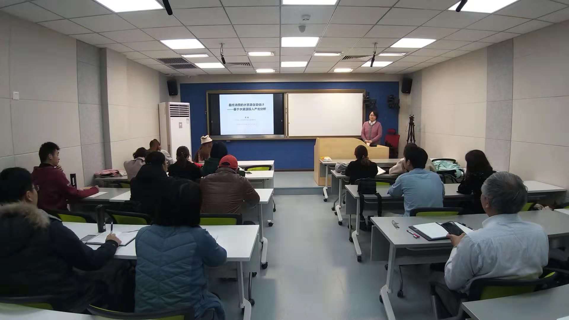 报告会上,张晓博士从水资源投入产出表的建立与模型出发,结合技术经济学的评价方法,阐述了最终消费的水资源含量统计发展与最新的国际动向,并列举了发达国家、发展中国家,特别是中国最终消费水的现状,依据国家统计局数据,提出了17部门的水资源投入产出评价模型。报告会内容丰富、前瞻性强,理论与实践紧密结合,会场气氛非常活跃。会后,张晓博士就师生的提问做了详细的解答。