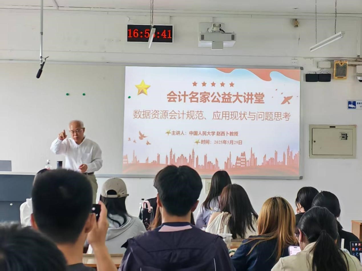 赵西卜教授授课风格生动幽默,用通俗易懂的语言讲解复杂问题,深受学生喜爱。讲座结束后,他与学生进行了热烈互动,耐心解答问题,勉励学生勇于探索创新,投身数据资源会计研究。学生们表示收获颇丰,对数据资源会计有了全新认识,对其研究和应用充满信心。