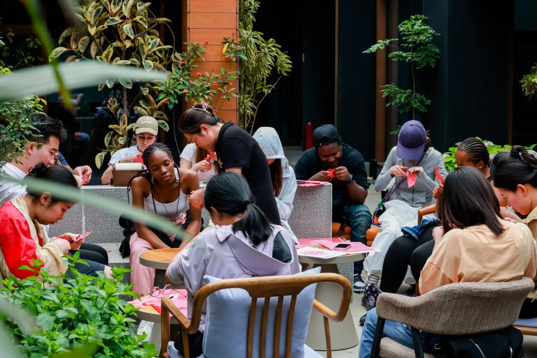 下午,中外同学们再度踏上探寻之路,走进观澄民宿,在这里观看了以“流动万象”为主题的西山永定河数字艺术展览,领略现代艺术与传统文化相结合的独特魅力。通过数字艺术的展示,使中外学生们对中国文化有了更加深入与多元的了解。随后,在民宿服务人员的带领下,同学们一同体验了中国传统非遗手工,制作了精美的龙年剪纸。在动手制作的过程中,中外同学们更加深刻地感受到了中国传统手工艺的精湛与独特,同时,进一步了解了中国传统文化的内涵与价值。
