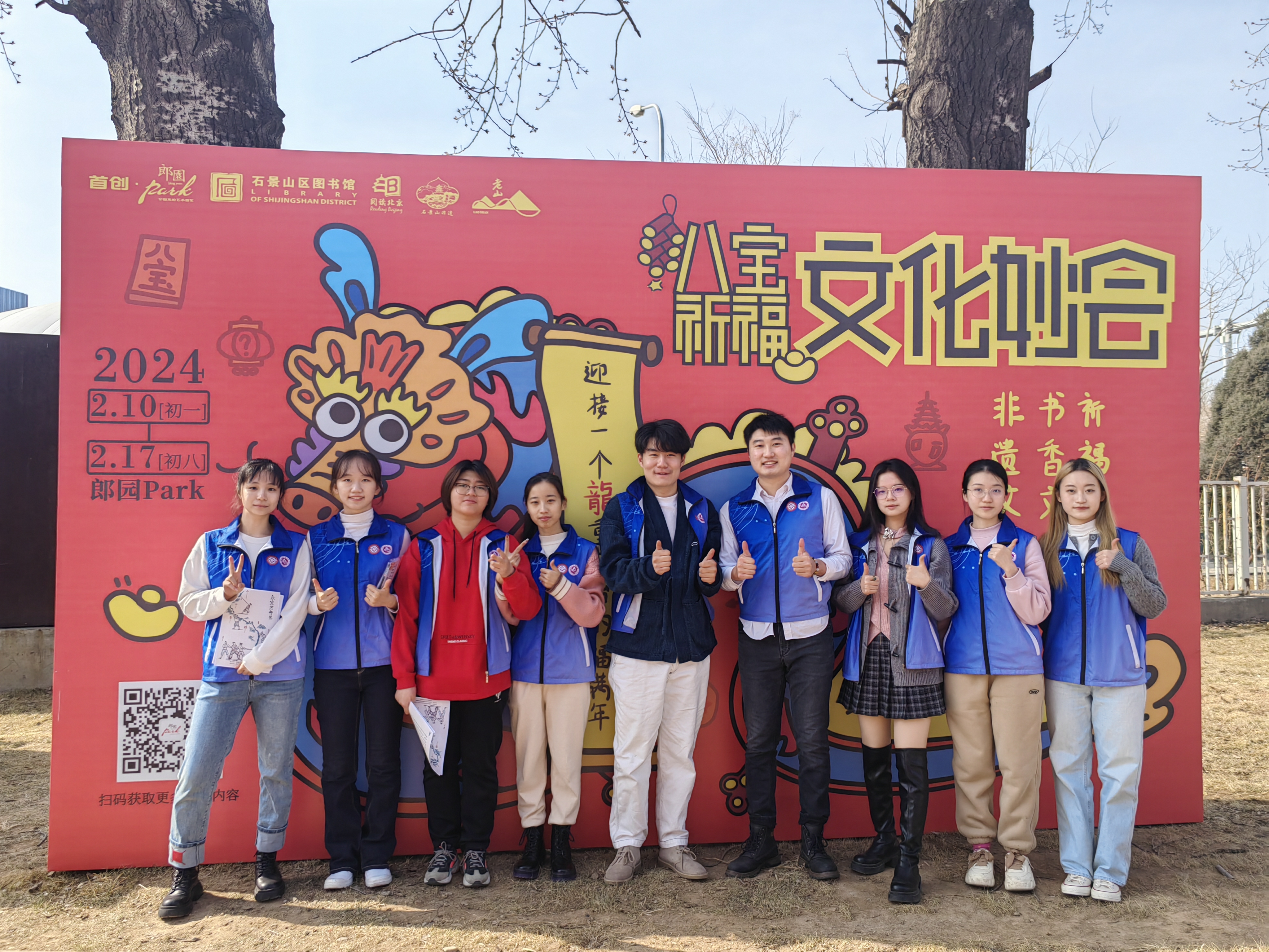 为宣传西山永定河文化带建设,讲好石景山非遗故事,让非遗融入生活,春节期间,经管学院学生参加了石景山区非物质文化遗产保护中心主办的春节朗园Park妙(庙)会,以民间文学“永定河传说”为主题,开展“趣听”永定河传说主题志愿活动。