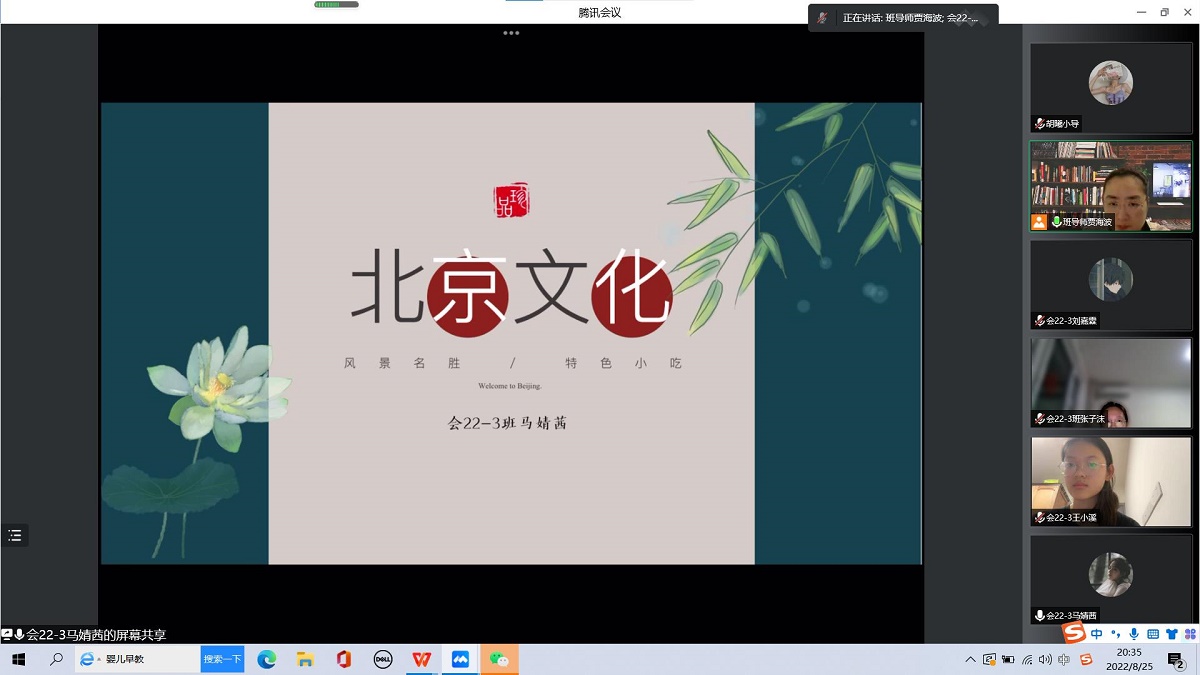 在线上主题交流活动中,同学们围绕“我心中的北京和大学”进行交流。京外同学分享了入校的心情和感受,畅谈对学校和北京的认识,京内同学介绍了北京的风景名胜和特色小吃等。在交流过程中,同学们增进了彼此之间的了解,提升了感情。随后,班导师、小辅导员对大学的学习生活和校园环境进行了初步介绍,对每名学生给予温情关怀,让新生充分感受到了亲切和温暖。