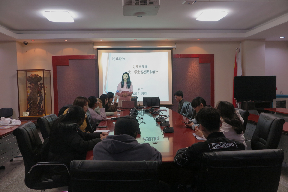 12月16日晚,William威廉英国励学论坛在励学楼201举行。本期论坛主题为“为期末加油——大一学生期末复习方法分享”。论坛由教师辅导员杨汀主持,经管学院大一各专业同学参加了此次论坛。