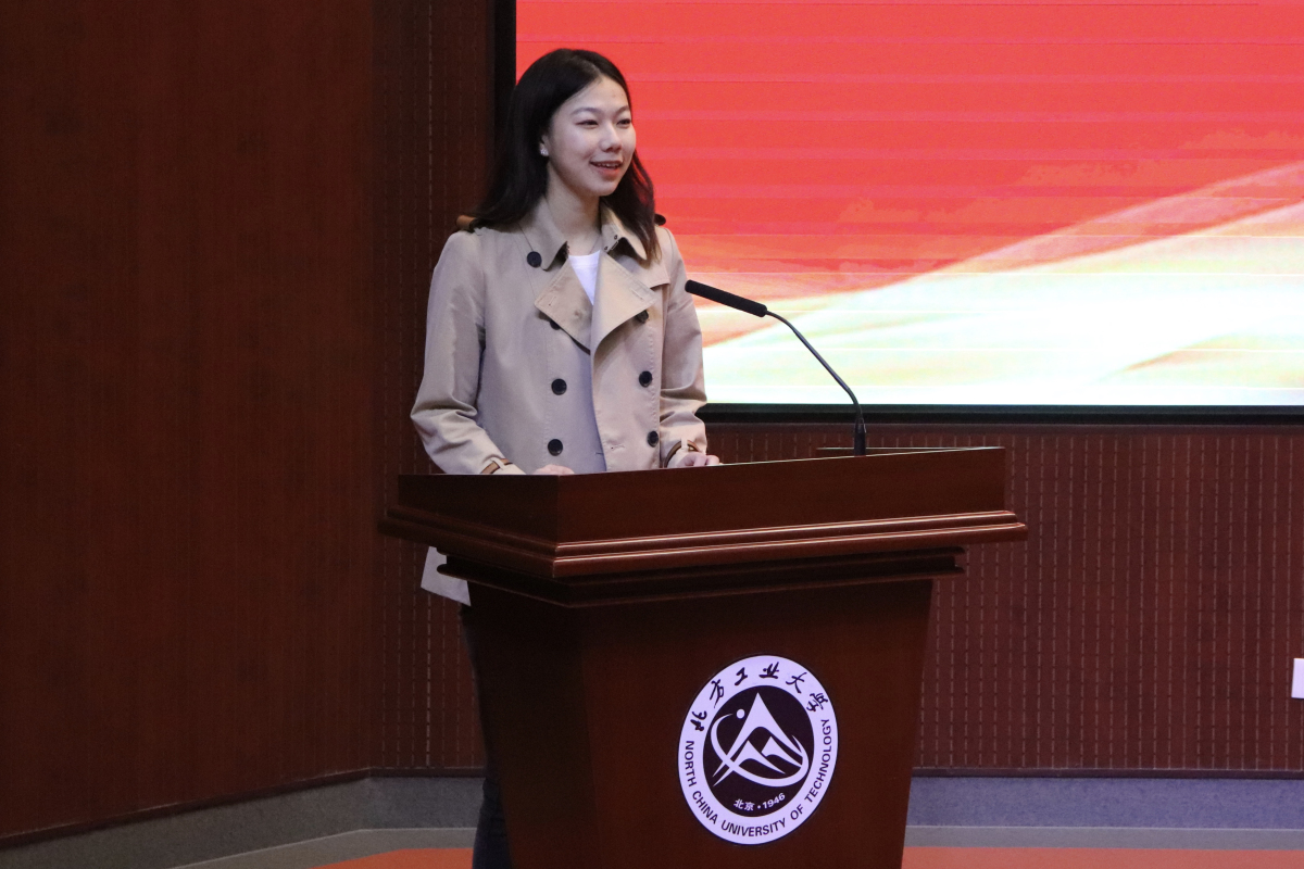 学生会主席、团委副书记郭孟涵同学进行发言。郭孟涵主席首先感谢了老师对团学的支持和指导以及学长学姐们对团学的付出,也表达了对刚刚加入团学的新同学的欢迎,同时向同学们提出了三个共同目标:“平衡好学习与工作,学会承担责任,努力变得优秀成为榜样。”以目标激励同学们,以自身勉励同学们,让台下的同学们对未来团学工作充满干劲,也对之后在团学的生活无比向往。