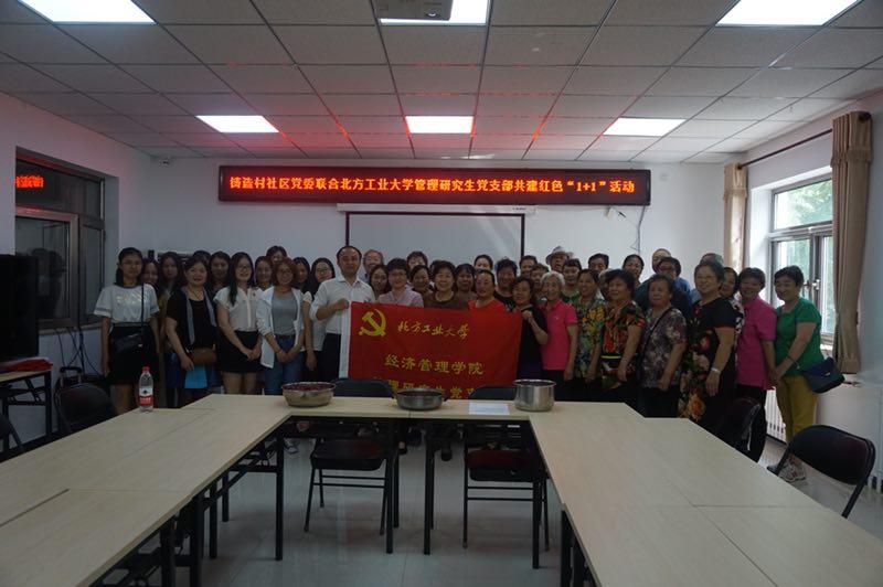 为进一步提高党支部的创造力、凝聚力、战斗力,更好的履行党员“双报到”职责。管理研究生党支部于2018年6月12日赴铸造村社区与铸造村社区党委共建红色“1+1”活动,活动主题为“共建红色1+1——绿丝带爱老助残端午节”。参加本次活动的有学院党委副书记赵洁、铸造村社区党委书记吴晓娟、管理研究生党支部书记涂剑波以及党支部的12名党员。