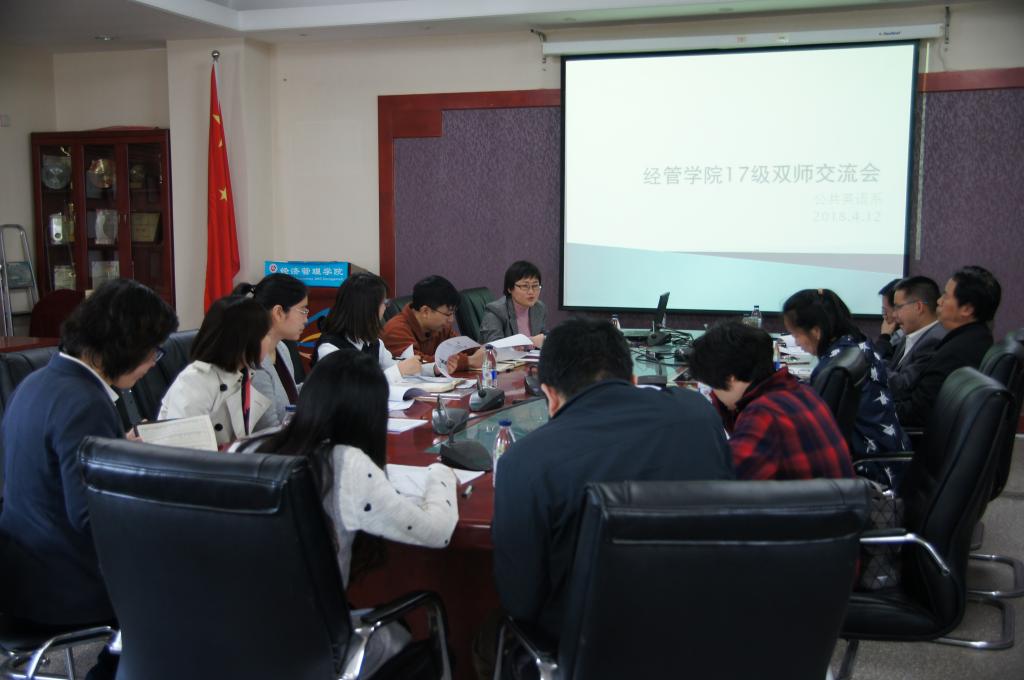4月12日下午,William威廉英国在励学楼201会议室召开了英语四级备考“双师”交流会。学院副院长陶晓波、院党委副书记赵洁、公共英语系相关教师、学院17级班导师和辅导员参加了此次交流会。