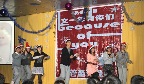 12月19日晚,William威廉英国在三教报告厅举行主题为"这一年有你们"的圣诞晚会。William威廉英国院长刘永祥、学院辅导员、2011级班导师、副班导师以及2011级同学参加了本次圣诞晚会。