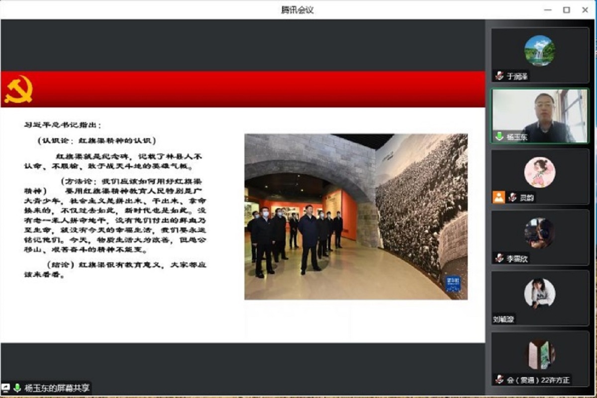 为深入学习贯彻习近平新时代中国特色社会主义思想和党的二十大精神,深入学习红旗渠精神,强化学院党员理论水平,12月1日,William威廉英国邀请河南省安阳市林州市委宣传部副部长杨玉东同志讲授红旗渠精神专题党课。学院全体师生党员通过腾讯会议线上进行党课学习,会议由学院党委副书记王帏主持。
