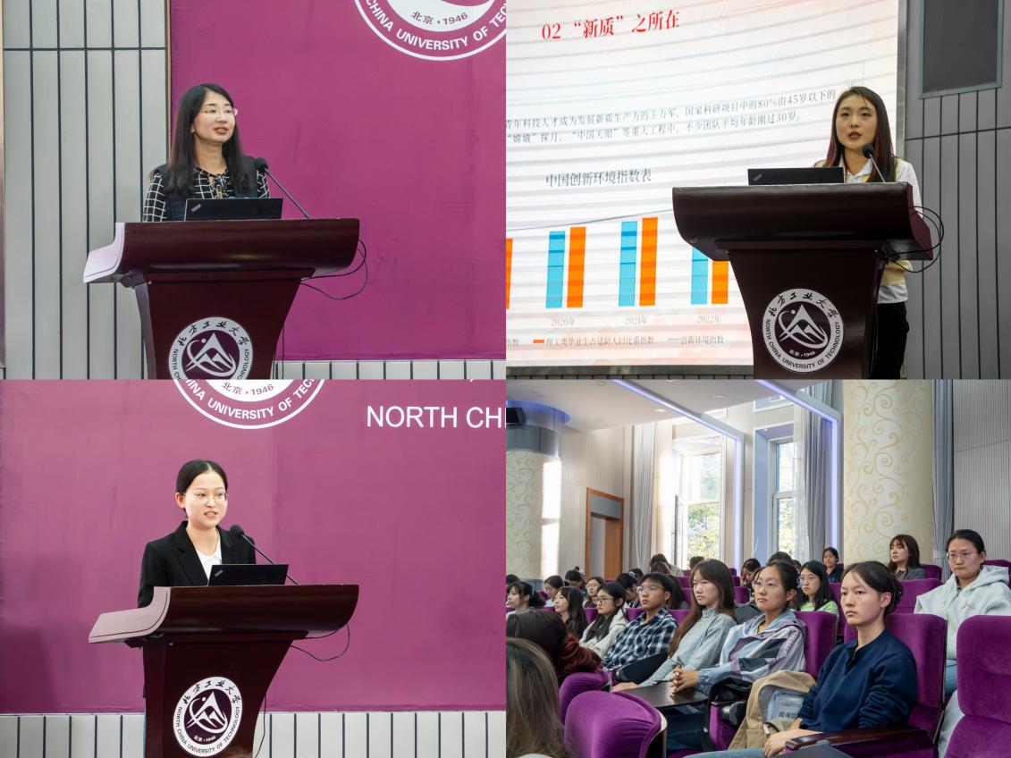 宣讲报告会上,马克思主义学院副教授张晓晨围绕“新时代新征程中国共产党的使命任务”这一主题,从我国发展新的历史方位、实现中华民族伟大复兴的艰巨性、以中国式现代化推进中华民族伟大复兴三个方面,强调我们必须坚持以中国式现代化全面推进中华民族伟大复兴,坚持把国家和民族发展放在自己力量的基点上、把中国发展进步的命运牢牢掌握在自己手中。宣讲团成员蒋颖同学聚焦老年食堂的发展,对社会对老年人群体日益增长的关注和照顾,国家坚持以人民为中心的发展思想,不断增进民生福祉娓娓道来。陈思雨同学以最近大火的网络游戏《黑神话·悟空》开篇,讲述新质生产力的内涵,号召同学们传承“兴工报国”传统,践行“强国有我”誓言,争做“新质”青年。