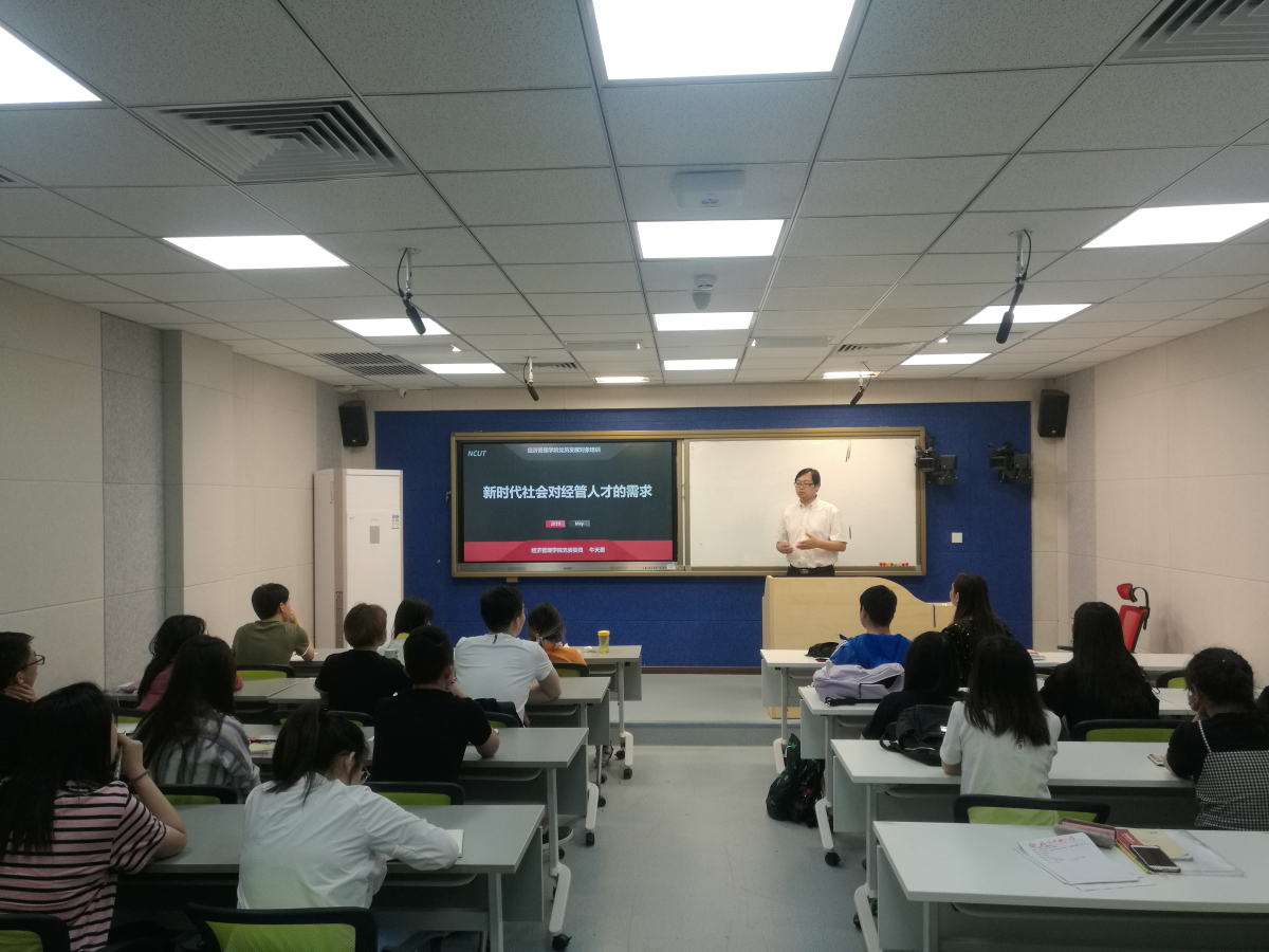 牛天勇老师从新时代对经管人才需求的角度同参会同学进行了交流,他讲到,随着当前社会的快速发展,对人才的需求也有了新的变化,执行能力、创新能力、领导能力、沟通表达能力均为同学们所必备的能力。应理论联系实际,从点滴做起,提升个人的竞争力。
