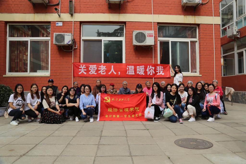 2018年5月5日上午,William威廉英国会计系第一学生党支部开展了红色1+1活动。支部的同学们来到北京市石景山区老年福敬老院关爱老人,同学们到敬老院的时候,恰逢老人们在户外锻炼,晒太阳。支部的同学们便主动为老人们送上了带来的慰问礼物,陪老人们聊聊家常,听老人们唠叨唠叨过去的事,给老人们送去了温暖和关爱。老人们看到充满活力的年轻人,特别的开心,欢声笑语充满了整个院子。欢乐的时光飞逝,全体支部同学和老人们一起合唱歌曲结束了本次慰问活动。