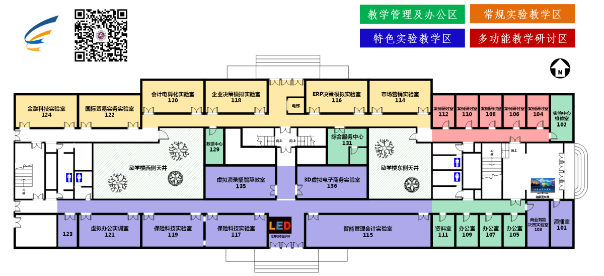 实验中心软硬件条件现代化程度高,设备设施较为完备,各类实验室占地面积1320m2,固定资产总值1800余万元。目前建有案例研讨室、虚拟演录播智慧教室、3D虚拟电子商务实训室、智能管理会计实验室、虚拟办公实训室、保险科技实验室、商业智能决策实验室等20个实验室,教育网和联通专线双千兆宽带网络接入,10余台服务器,300余台电脑。同时,已采购经管类国内主流软件模拟实训平台,服务于各类经管实验课程、专业竞赛和其他教学科研活动,并每天向学生免费开放。